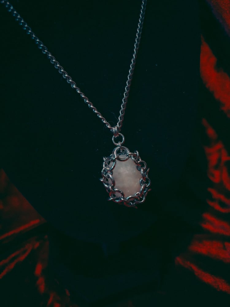rose quartz in stainless steel cage